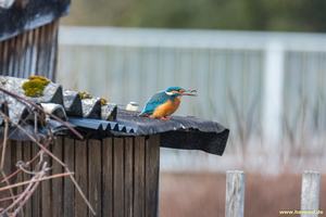 Das laute "Tiih" des Eisvogels kann man auch in Unterleinleiter vernehmen, wenn bei Spaziergängen am Ufer kleine blaue Blitze vorbeizischen. Mit etwas Glück kann man die Tiere an ihrem Ansitz beobachten. Anfang Februar 2026 zeigt sich ein vor Kälte aufgeplustertes Männchen sehr geduldig und lässt die Kamera auf weniger als zwanzig Meter heran. Als jedoch ein Artgenosse dicht über dem Wasser vorbeifliegt, wird sofort die Verfolgung aufgenommen.