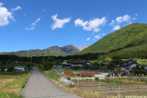 (赤石山脈, Akaishi Sanmyaku, "Roter Stein Bergkette"), auch Südalpen (南アルプス, Minami Arupusu) genannt. Ihre höchsten Spitzen erreichen fast 3200m.