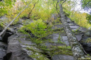 Ein paar Kilometer weiter mündet der Shibukuro-Fluss (渋黒川) in den Tama-Fluss (玉川) der nun zum Hōsen-See (宝仙湖) aufgestaut wird. Die 341 folgt auf 14km Länge dem westlichen, rechten Seeufer und möchten nach jeder Kurve anhalten um die grandiose Herbstlandschaft zu bewundern. Nach zwei Dritteln des Weges stellt die schmale Ogami-Brücke (男神橋) eine Verbindung zum linken Ufer her. Hier tront der steile Kegel des Iwanome (岩の目 Felsenauge). Das gelbe Schild warnt vor Absätzen in der Fahrbahn (この先段差あり).