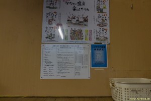 Nachtrag: Beim Betrachten der von kana920 in 2021 bei Google Maps eingestellten Bilder, fallen einige neue Schilder auf. 方 Personen aus 県外 (außerhalb der Präfektur) und 海外 (von Übersee) werden gebeten, das Bad nicht zu betreten. Gab es vielleicht unangenehme Gäste? Die Bilder haben eine etwas schlechte Auflösung, aber man kann auf einem Schild oberhalb des Ticketautomaten das Wort コロナ Corona erkennen. Als ich meiner Frau davon erzähle, werde ich gefragt: