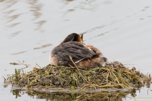 verstauter Kamera, vom stehenden Fahrrad aus ein Kontrollblick zu den Haubentauchern und ihrem Nest geworfen wurde.
