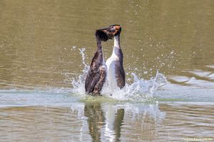 wie toll sie Dreck, pardon, Nistmaterial vom Boden des Sees sammeln können. Bei diesem Tanz ist die Krone flach angelegt,