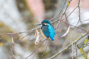 Virginia Reif als Vorlage für ihre Arbeit "Fränkische Fauna: Eisvogel in Weide" gewählt wurde.Kingfisher . Alcedo atthis . Martin-pêcheur d'Europe . 翡翠、翡翆、魚狗、川蟬 [カワセミ]