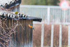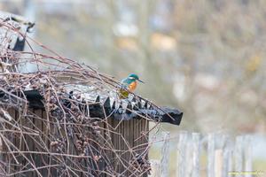 Das laute "Tiih" des Eisvogels kann man auch in Unterleinleiter vernehmen, wenn bei Spaziergängen am Ufer kleine blaue Blitze vorbeizischen. Mit etwas Glück kann man die Tiere an ihrem Ansitz beobachten. Anfang Februar 2026 zeigt sich ein vor Kälte aufgeplustertes Männchen sehr geduldig und lässt die Kamera auf weniger als zwanzig Meter heran. Als jedoch ein Artgenosse dicht über dem Wasser vorbeifliegt, wird sofort die Verfolgung aufgenommen.